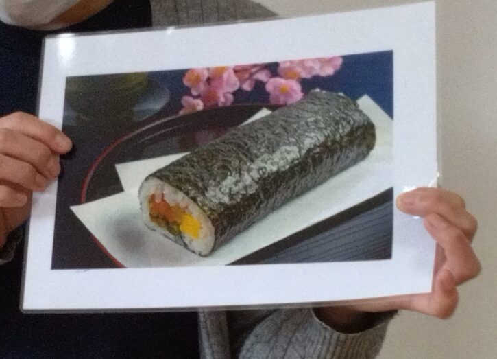 恵方巻は節分の夜にその年の決まった向きを向いて、願い事を思いながら一言も話さずに食べると願い事がかなうともいわれていることから、食べられています。