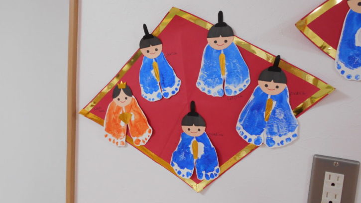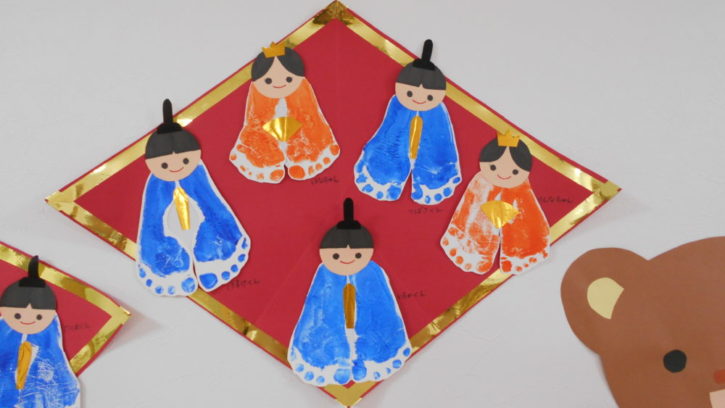 ひな祭りのおだいり様とおひな様の衣を足型で作ってみました!いかがですか(^o^)?