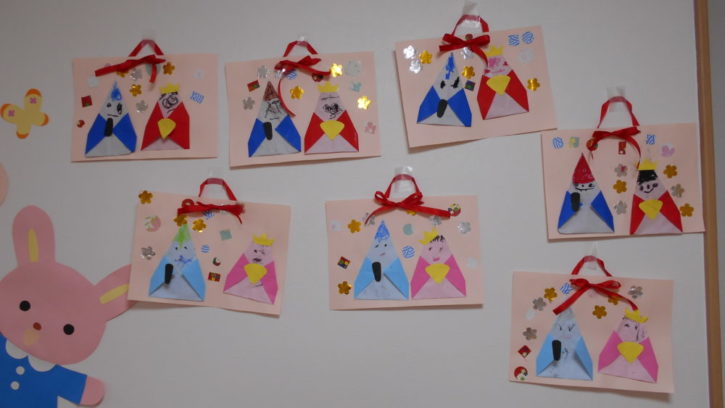 丁寧に折り紙を折り、おだいり様とおひな様を作りました!