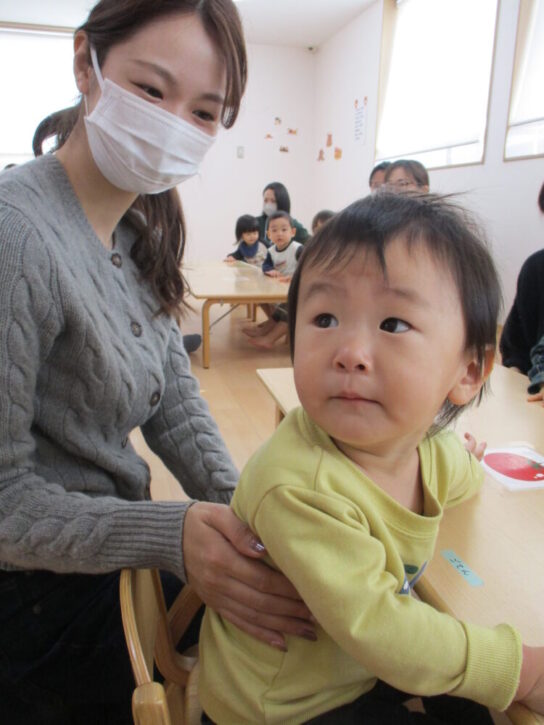今回は、かわいらしい『もも組さん🍑』(0歳児クラス)の様子をお伝えいたします(*’ω’*)