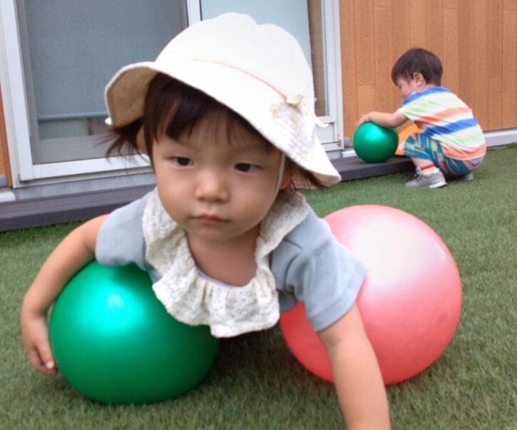 園庭での『ボール🥎遊び』では、身体をたくさん動かして、とても楽しそうです(^^♪