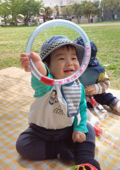 笑顔で、いろいろな遊びを楽しむお友だちです(^_-)-☆