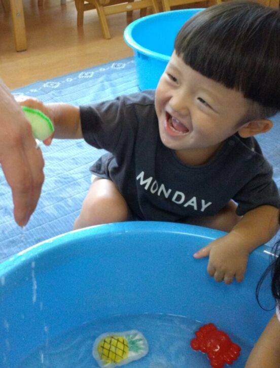 今年の夏は、室内での水遊びをたくさん実施しております🐟🐡