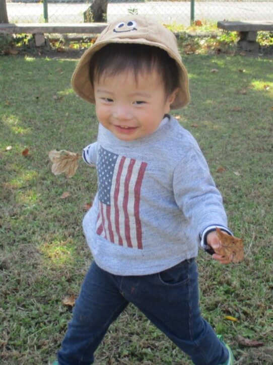 公園にて・・・落ち葉🍂を拾って、嬉しそうに駆け回っています(^o^)丿