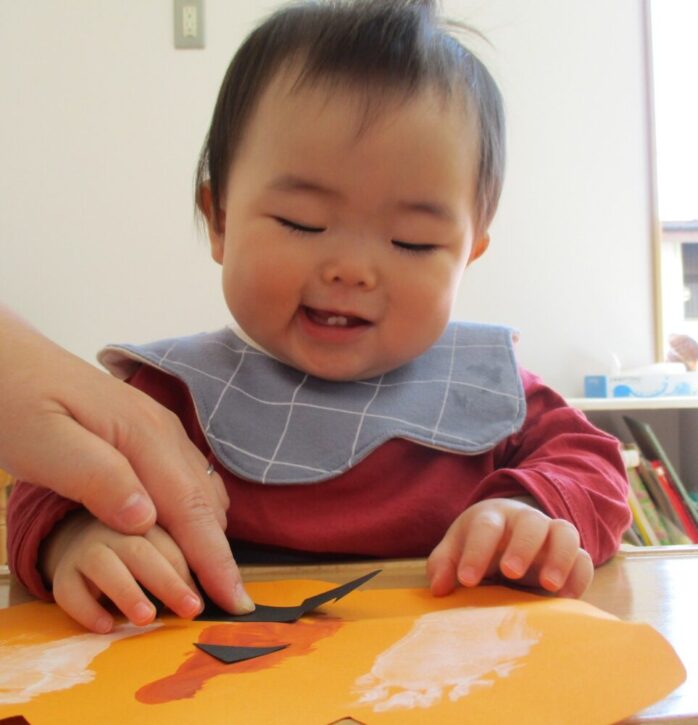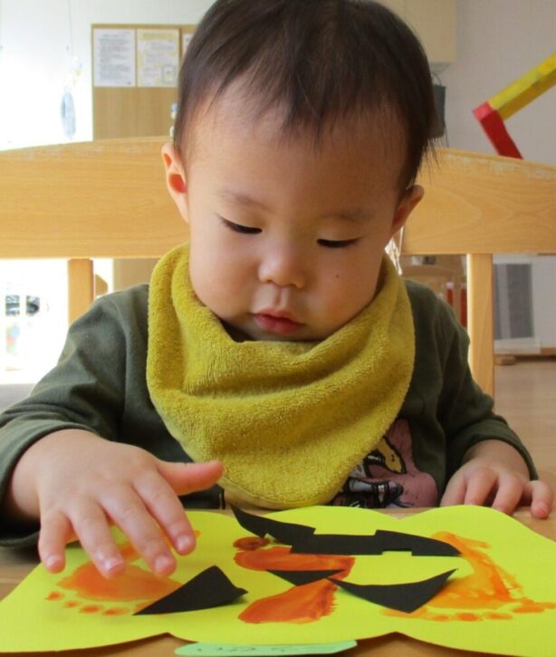ハロウィン🎃の制作では、かぼちゃの『目』や『口』を楽しそうに貼ることができています。