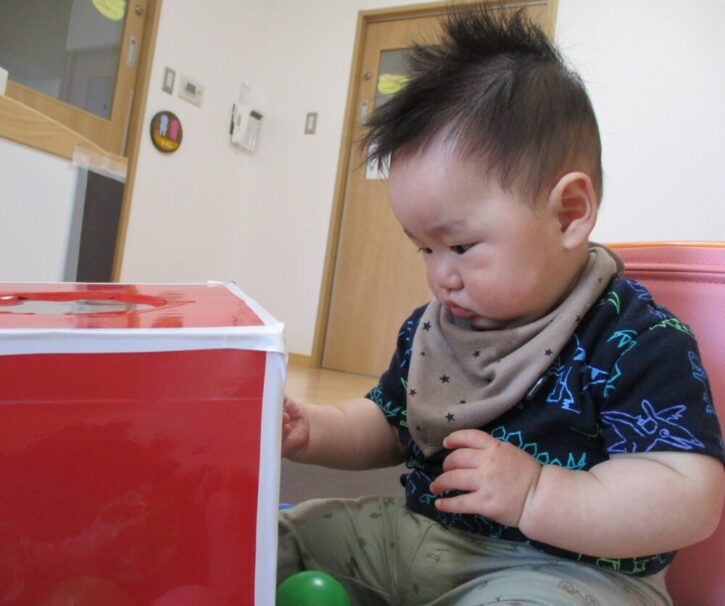箱の中身が見えるので、中には何が入っているの?と真剣に見ています👀