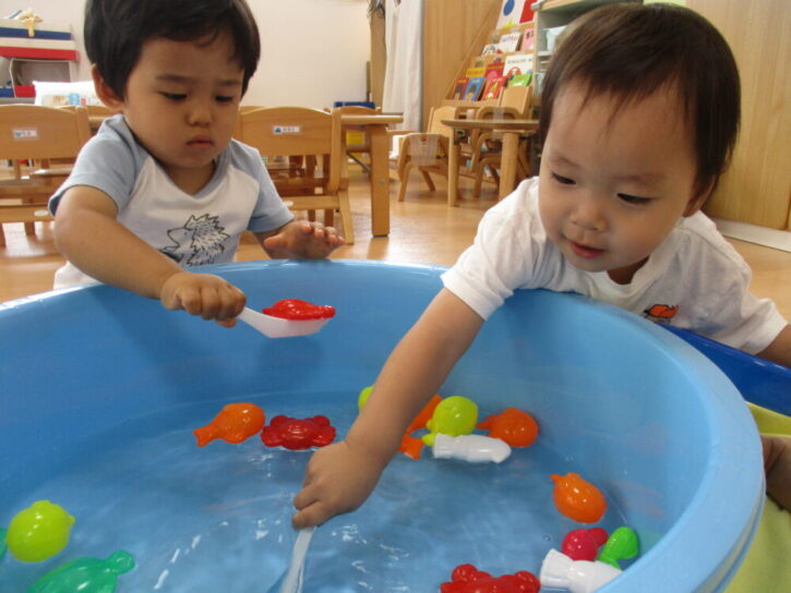 今年の夏は、室内での水遊びをたくさん実施しております🐟🐡
