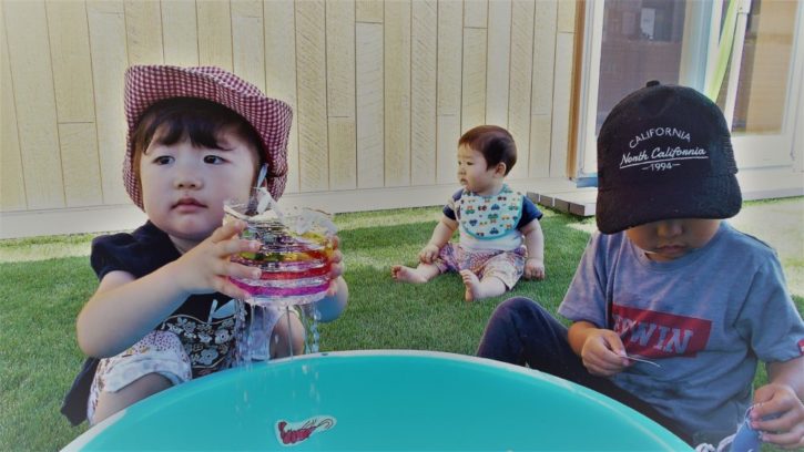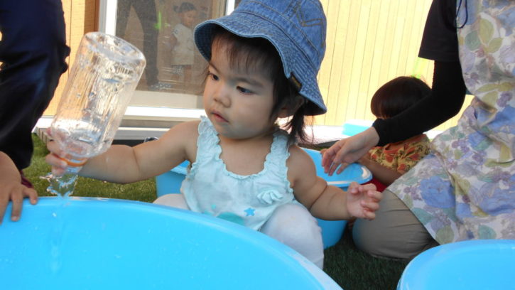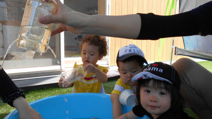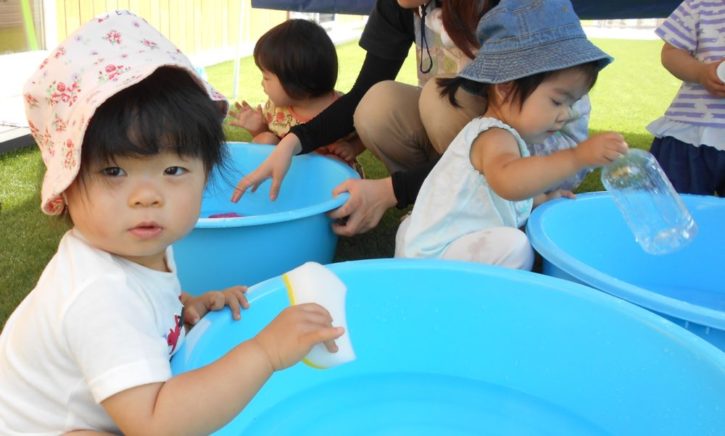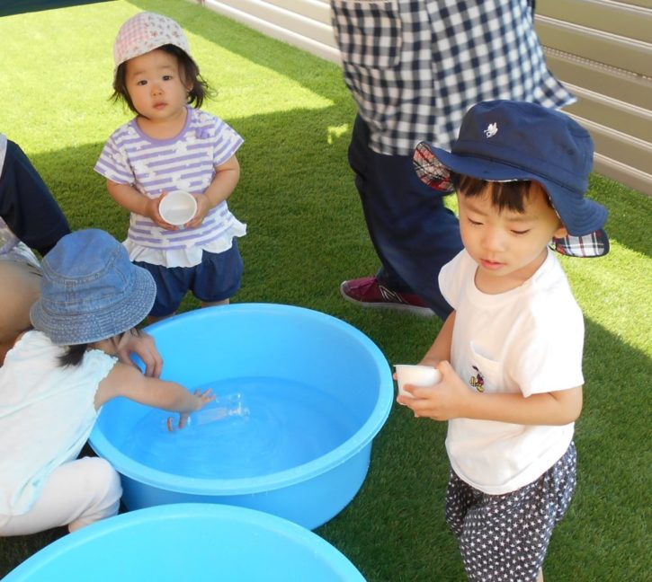 水あそび💦💦 2019年8月3日2019年8月2日 こんにちは!なみきッズ保育園です。 毎日酷暑が続いていますが、なみきッズたちは、暑さに負けず元気いっぱいです!! 元気なみんなの、水遊びの様子をご紹介いたしますね。 たんぽぽ組(1歳児)さんの水あそびの様子は? お友だちと一緒にはじめての水あそび・・・最初はどうしたらいいのかとまどっていたみんなでしたが・・・ とっても楽しそうな、いい笑顔になりました♪ ペットボトルにお水を汲んで、シャワー♬ 楽しくて、夢中になっていますね!! 続いては、ちゅうりっぷ組(2歳児)さんと、もも組(0歳児)さん✧♡ シャワーをかけてもらい、嬉しそう!! お外はとても暑いけど、テントの下は涼しくって最高✌✌✌ また、みんなでおもいっきり水遊びしようね・・・!! 💦💦なみきッズの水あそびによる事故防止観点💦💦 ●テントの日陰で実施します。(気温・湿度のチェックをこまめに行い、27℃~28℃に保たれています。人工芝上の日陰は比較的温度上昇が抑えられることが確認されています。気温が上昇した際には、すぐに室内保育に切り替えます。) ●保護者の方から毎日、お子さまの様子を「水遊びOK/シャワーのみOK/水遊び・シャワーともにNG」と申告いただき、個別対応で水遊びを取り入れております。体が冷えすぎないよう、時間管理も徹底して対応しております。