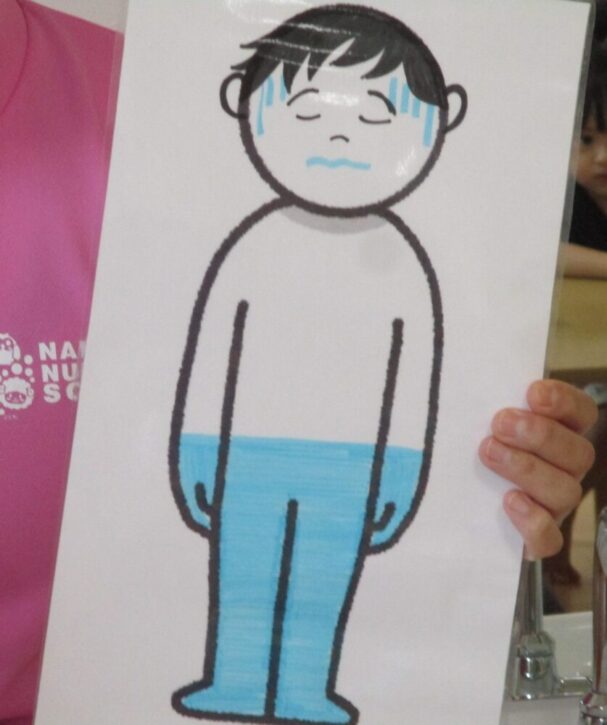 このおともだちの絵をみて、人の体にはどれくらいの水分があるのか見てみましょう♪