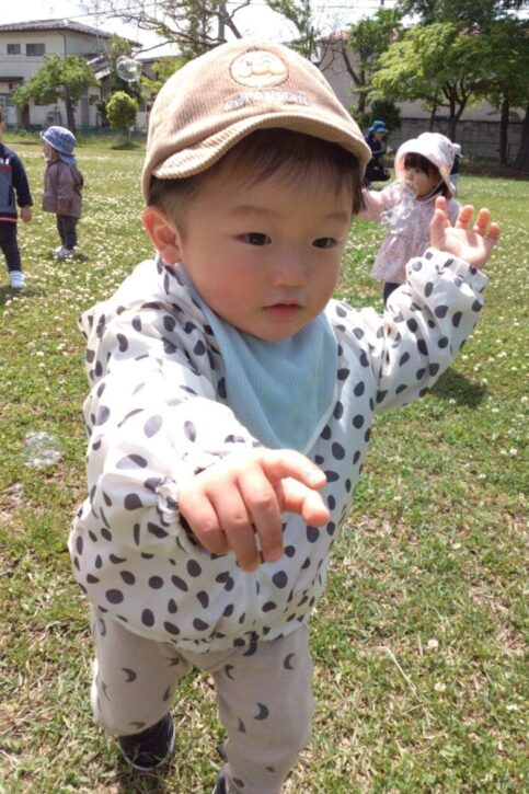 シャボン玉を追いかけたりして、5月のさわやかな季節を楽しむ『たんぽぽ』組のお友だちです。