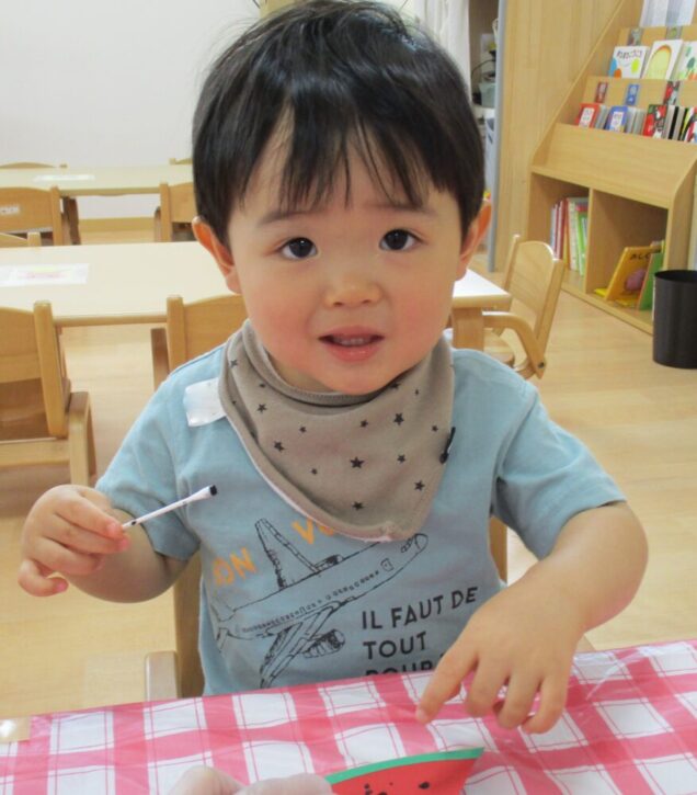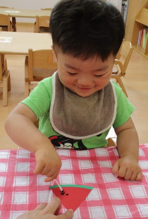 今回はたんぽぽ組の七夕飾りすいか🍉の制作の様子を紹介します(^^)/