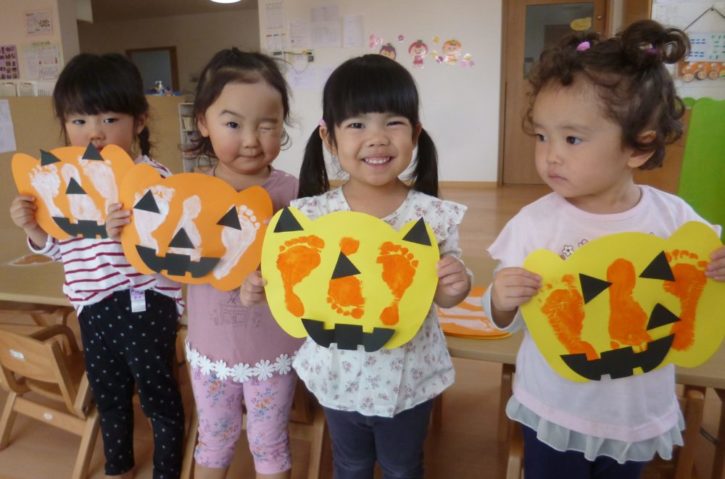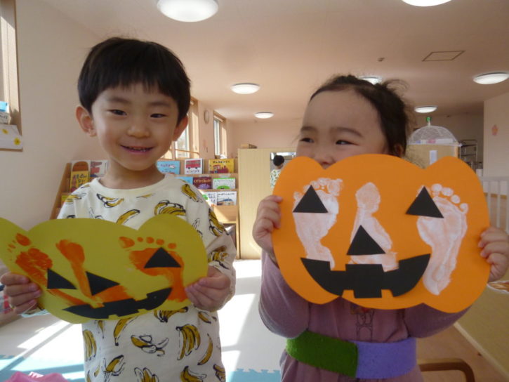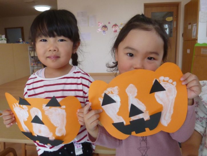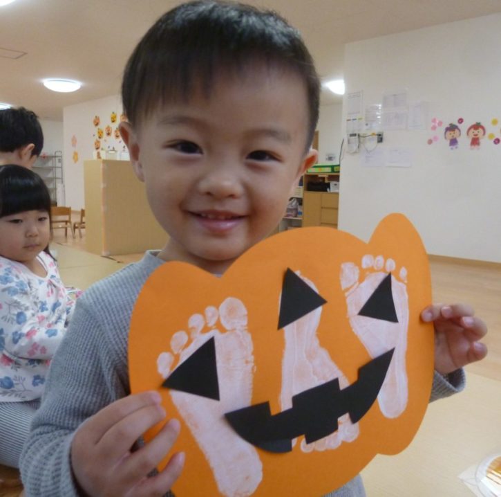 ハロウィン🎃の制作では、かぼちゃの『目』や『口』を楽しそうに貼ることができています。