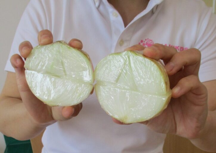 「たまねぎを縦に切ると、こ~んなもようがでてきます!」