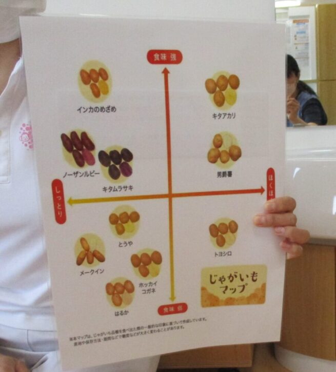「じゃがいもを食べると、みんなが疲れた時に体をなおしてくれたり、お肌をつるつるにしてくれますよ😊」